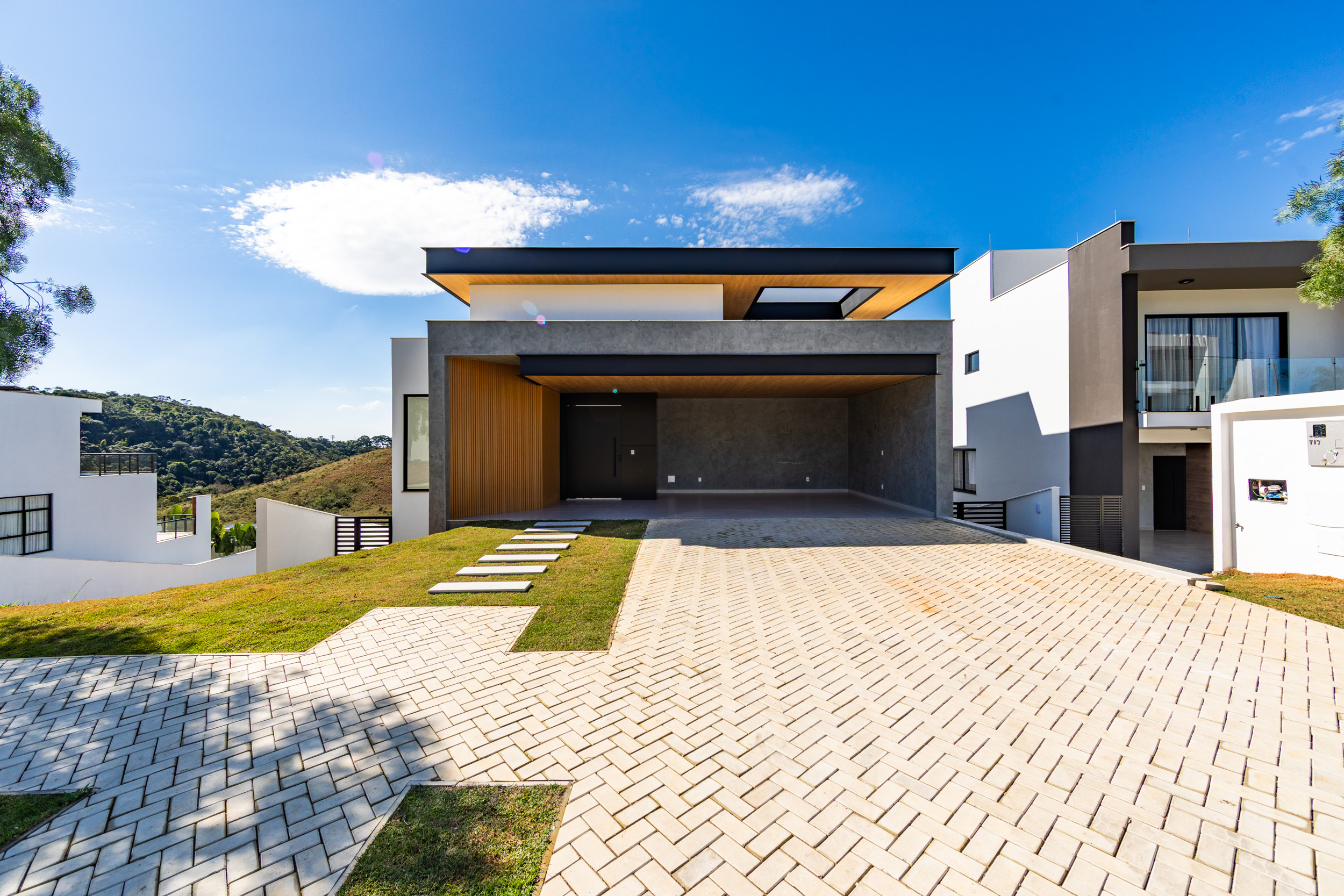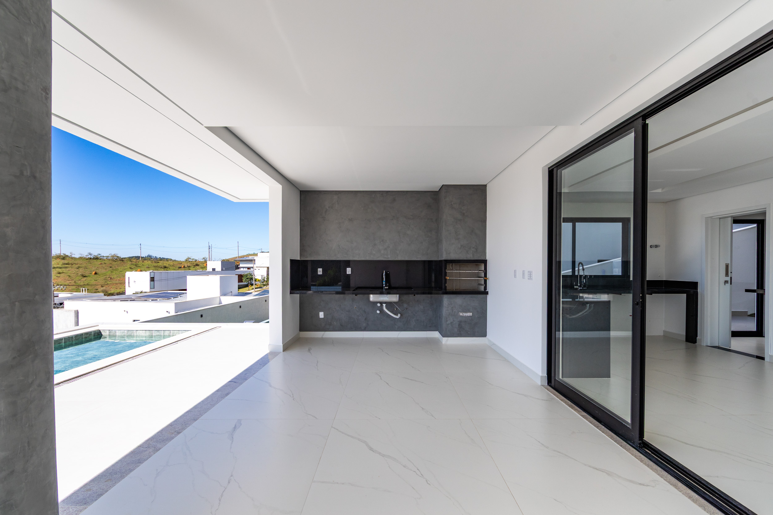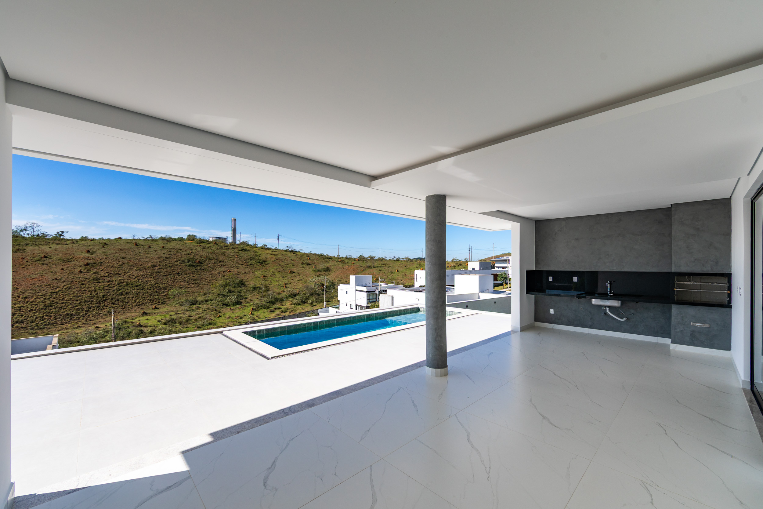 Assinada pelo arquiteto Marcelo Amoroso, a casa é arquitetonicamente moderna e atemporal. Seu design primoroso valoriza ambientes amplos, iluminados e perfeitamente integrados, unindo beleza, funcionalidade e uma interação impecável com a natureza ao redor.