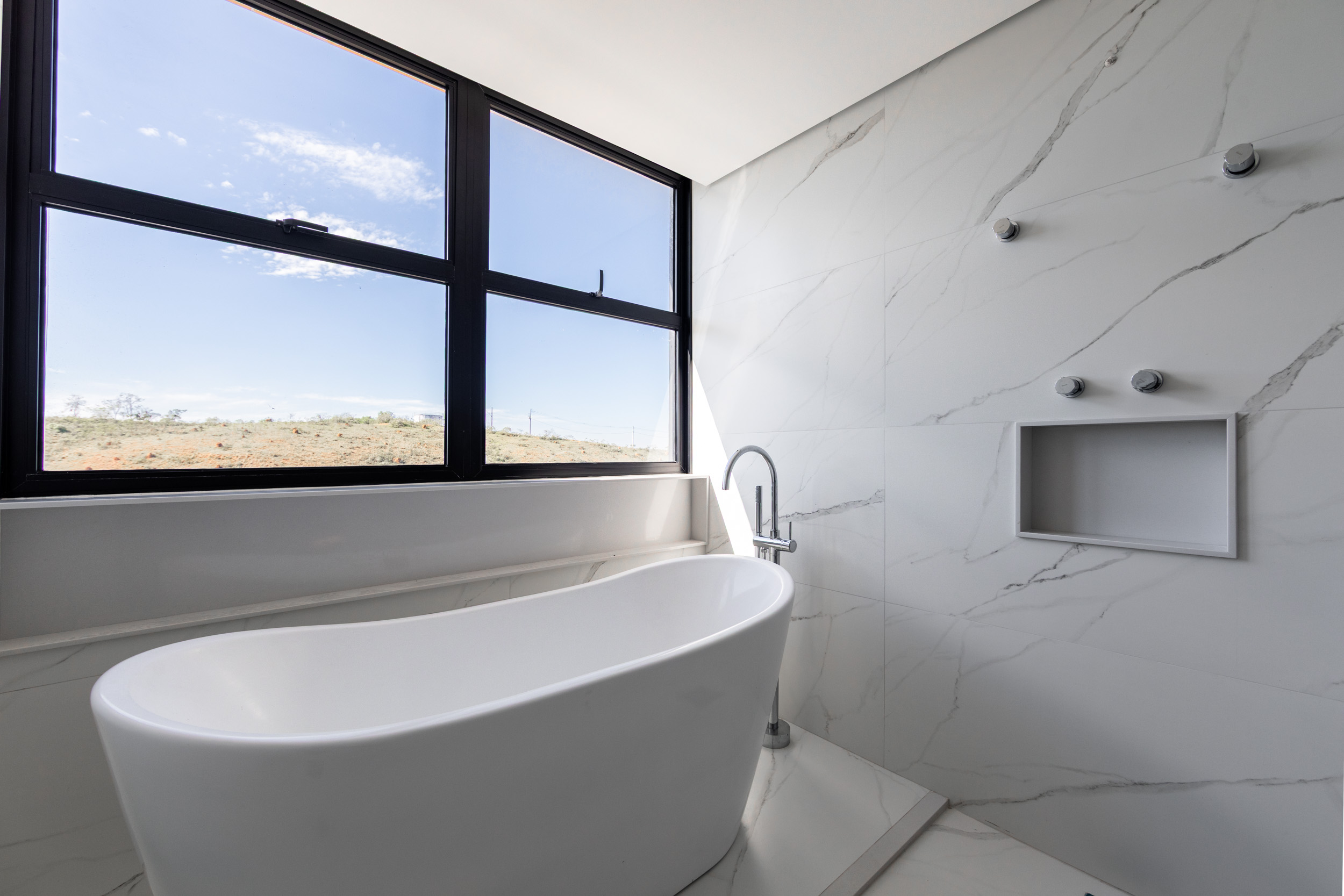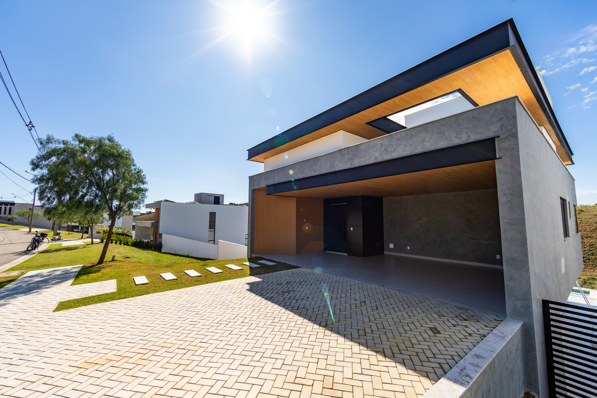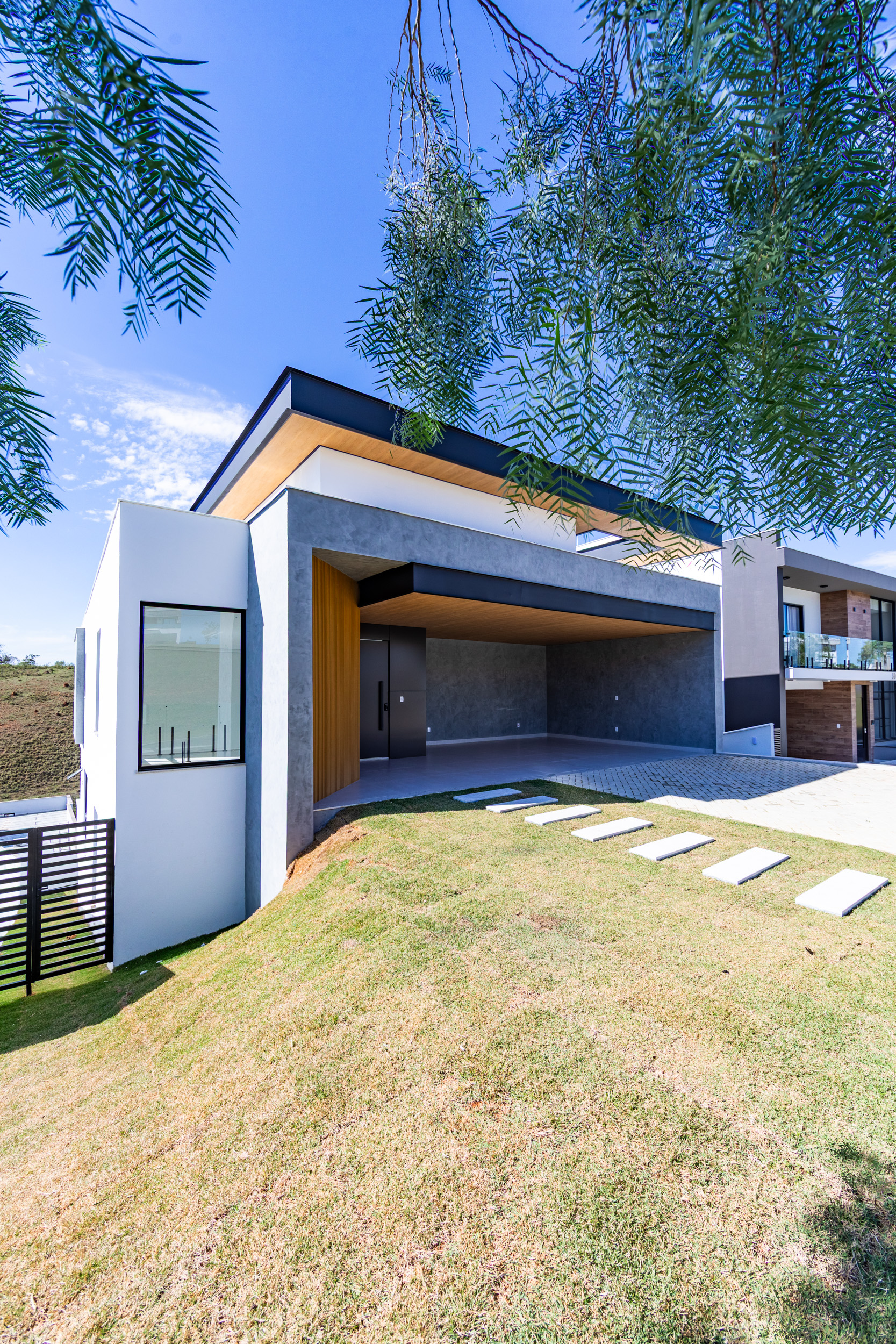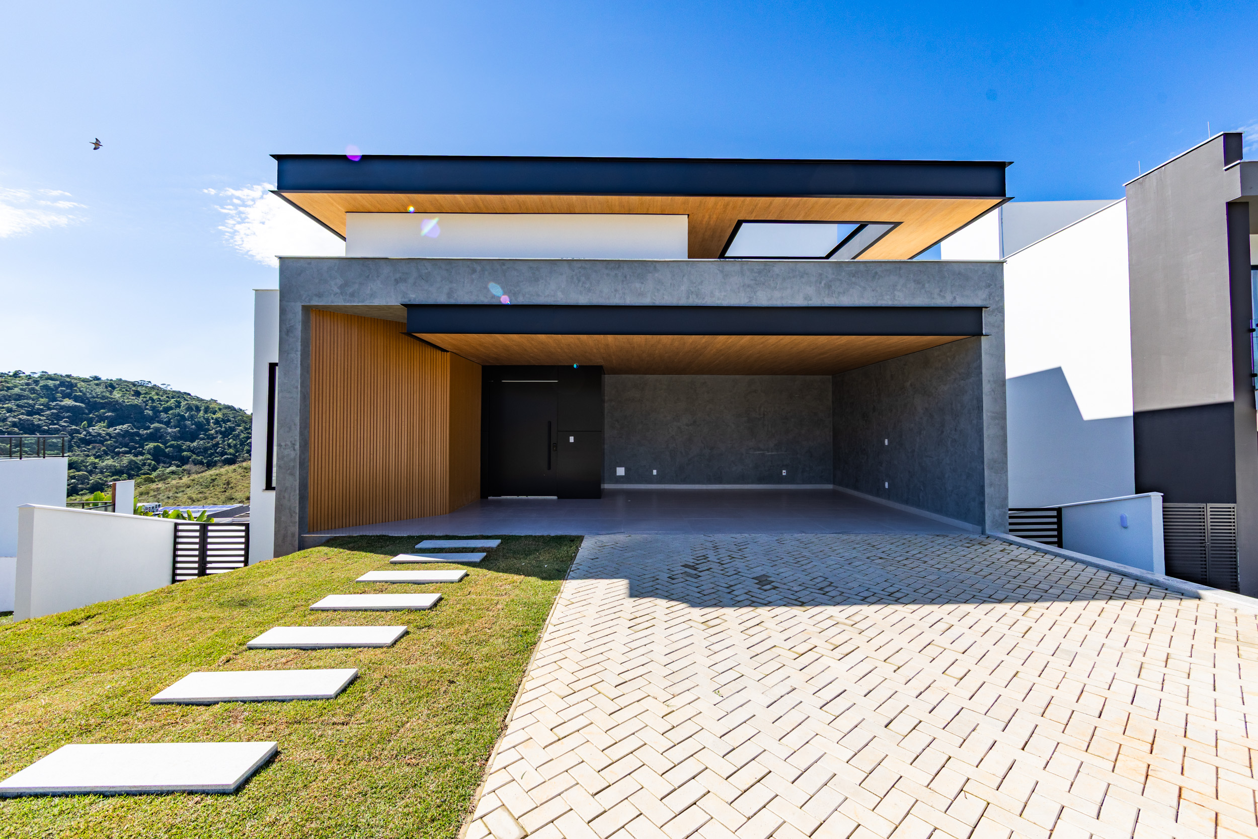 Assinada pelo arquiteto Marcelo Amoroso, a casa é arquitetonicamente moderna e atemporal. Seu design primoroso valoriza ambientes amplos, iluminados e perfeitamente integrados, unindo beleza, funcionalidade e uma interação impecável com a natureza ao redor.